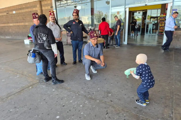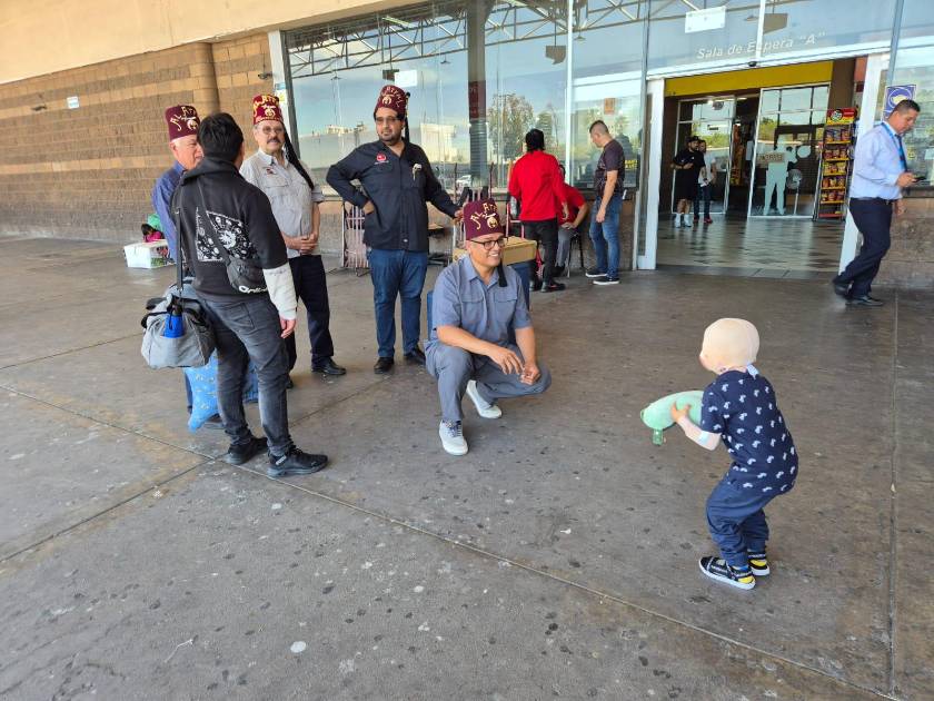 Durante este sábado, el pequeño fue recibido en la Central Camionera de Culiacán por un grupo de Nobles Shriners, junto con su tío Ricardo, quien fungió como su tutor.