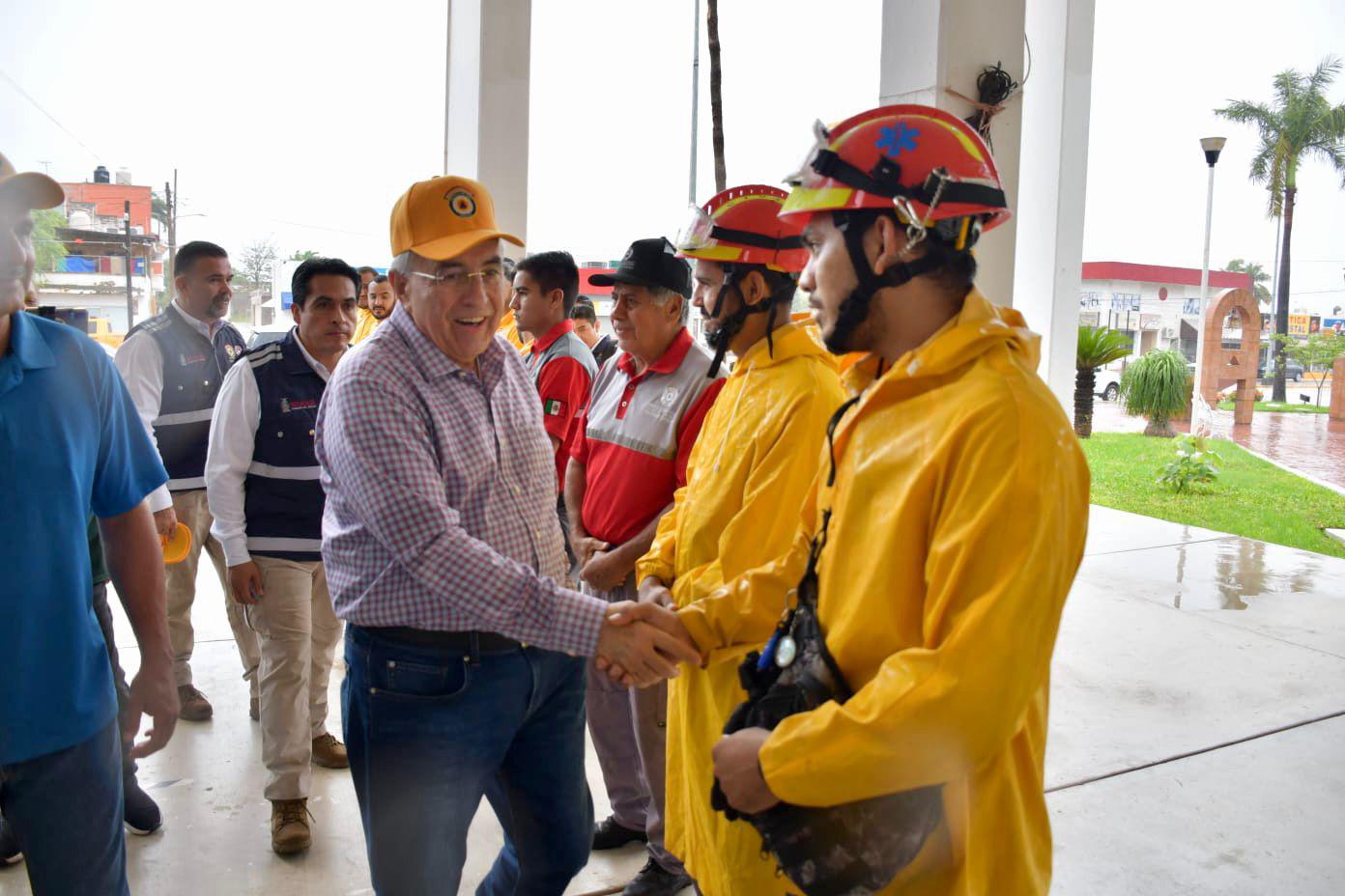 El Mandatario visitó las ciudades de Guamúchil y Angostura para coordinar las acciones de Protección Civil.