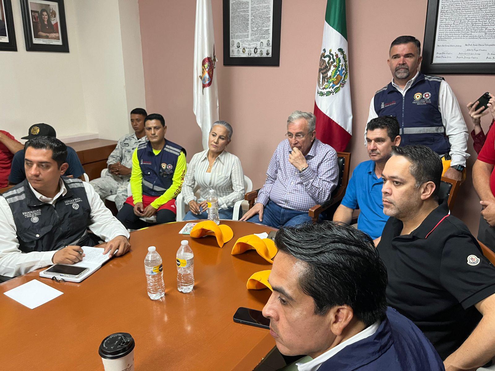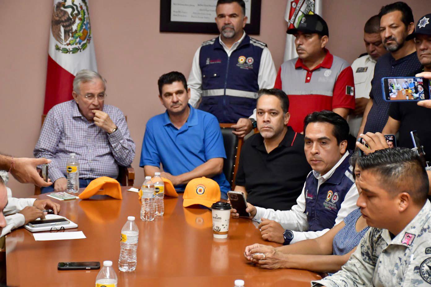 Rocha Moya arribó primero a Guamúchil, donde se reunió con el Alcalde de Salvador Alvarado, Armando Camacho Aguilar, y con todos los participantes del Comité Municipal de Protección Civil, para valorar la situación que priva hasta el momento.
