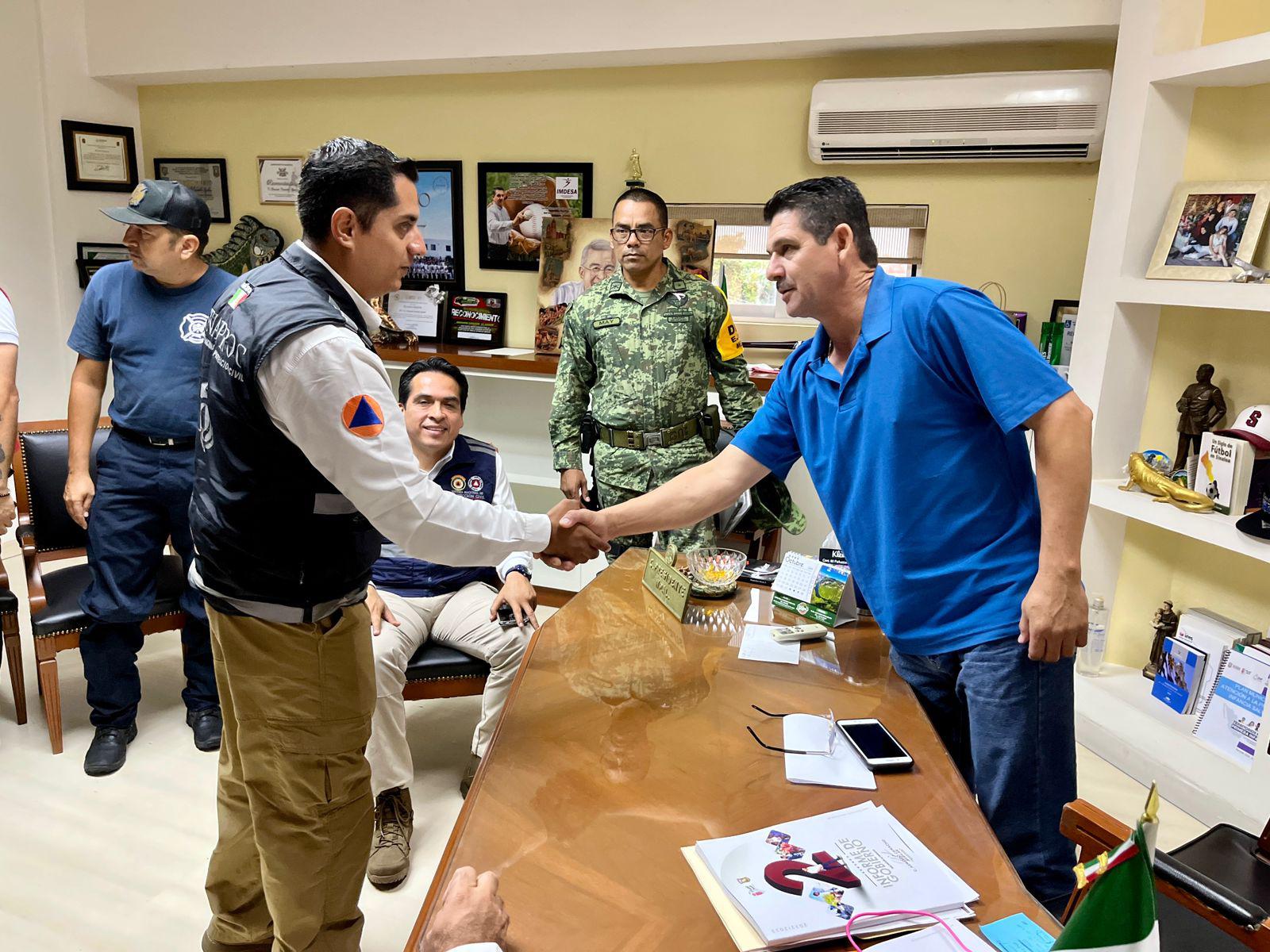 El reporte fue que no se han registrado daños a la infraestructura urbana y no ha sido necesaria ninguna evacuación de familias, aunque desde el sábado ya se tienen acondicionados y listos dos albergues, uno en la Casa de Día del DIF y otro en el CBTIS 45.