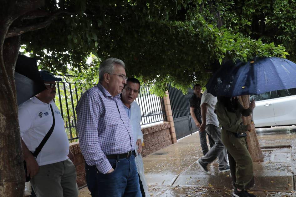 Rocha Moya recorre Guamúchil y Angostura, ante fuertes lluvias por ‘Norma’