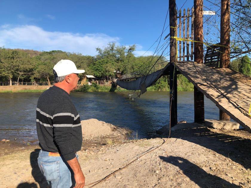 El puente colgante que da acceso al Venadario ubicado en La Galera de El Fuerte, se desprendió de un lado y varios turistas cayeron al río, por lo que el sitio fue clausurado.