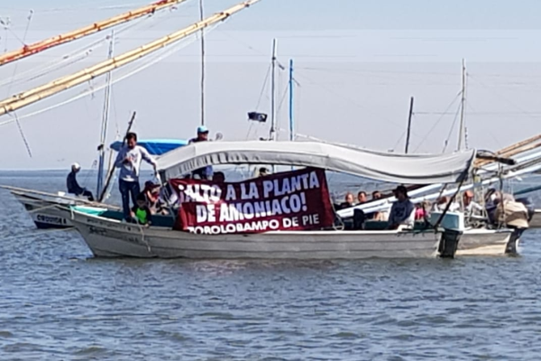 AHOME._ Un grupo de pescadores, lancheros y activistas se manifestó este domingo en contra de la planta de fertilizantes que la empresa Gas y Petroquímica de Occidente proyecta construir en Topolobampo.