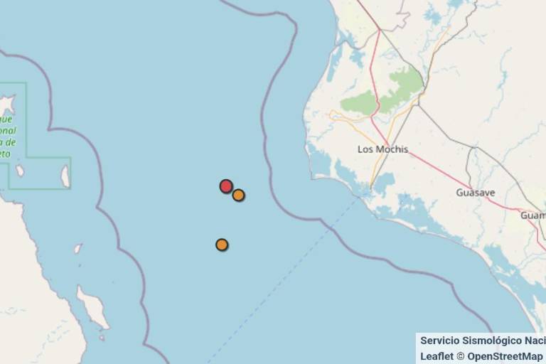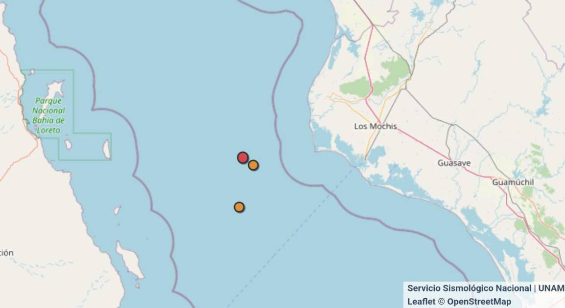 El tercer y último sismo hasta el momento se registró a las 00:26 de esta madrugada, con una magnitud de 4.4, y su epicentro se ubicó a 75 kilómetros al suroeste de Ahome, en la misma zona marítima, a una profundidad de 1o kilómetros.