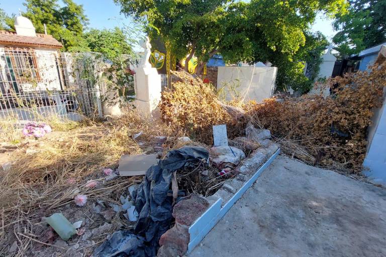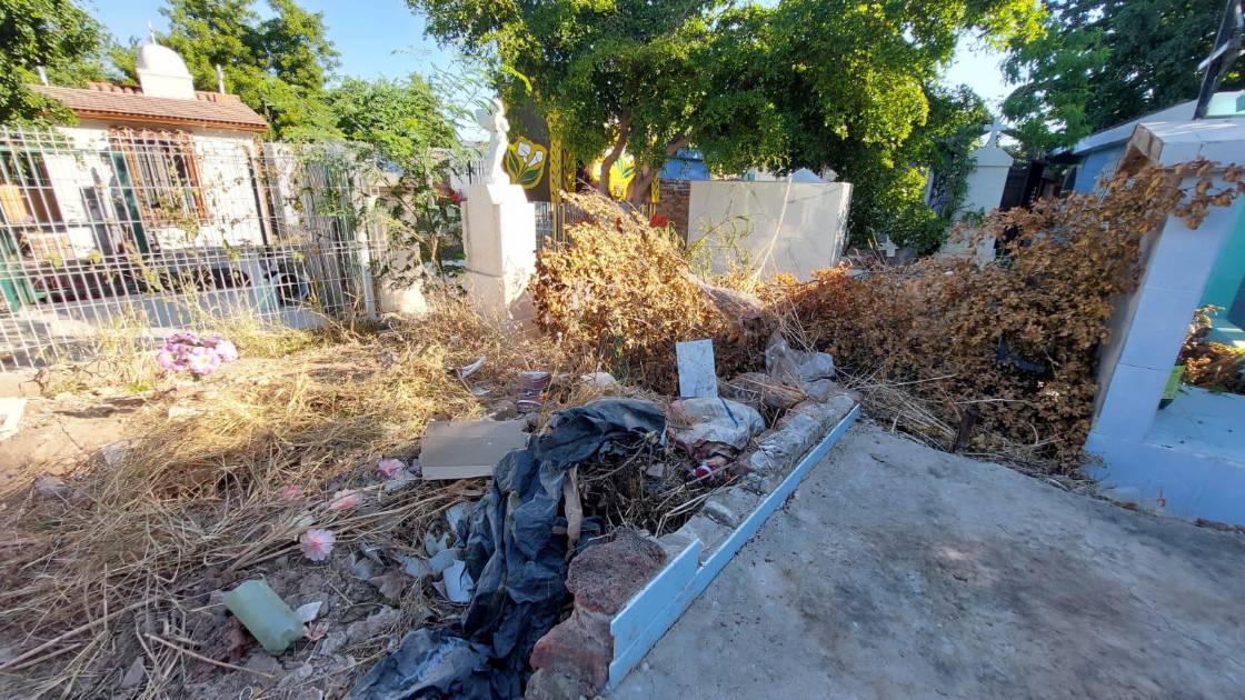 “Ya van dos veces que me hacen lo mismo, ahí está, vea el cochinero, ¿usted cree que me puedan tener contenta con esto?”, dijo mientras señalaba un montículo de basura y ramas que está junto a la tumba de su ser querido que se ubica a unos metros de la capilla de Valentín Elizalde.