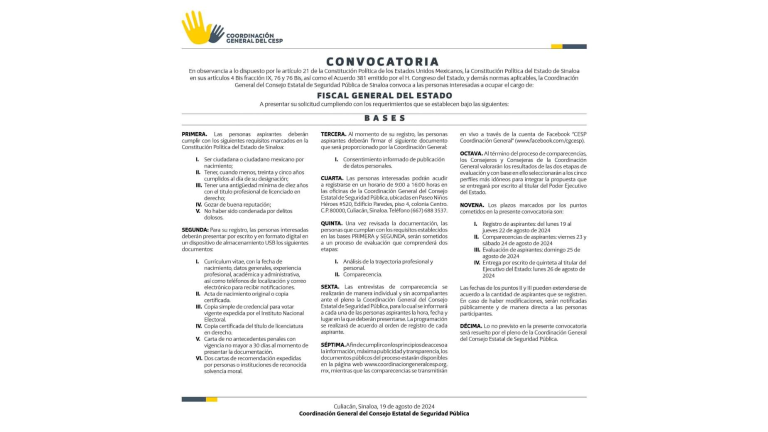 Hoy, el proceso de selección del nuevo Fiscal avanza. Fueron 25 los perfiles que se presentaron ante el Consejo Estatal de Seguridad Pública, siendo éste el primer filtro para presentar ayer cinco propuestas ante el Gobernador Rubén Rocha Moya y que éste presente tres últimas al Congreso del Estado para la elección final.