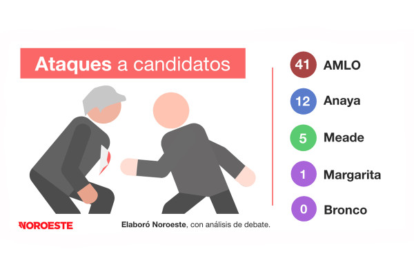 Principalmente de Ricardo Anaya, quien asestó 18 “golpes”: 15 para López Obrador y 3 para José Antonio Meade.