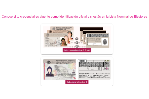 Al espacio se accede a través de la lista nominal que está pública en el INE, ahí los usuarios pueden buscar entre cinco modelos diferentes de credenciales que aún están en circulación, dependiendo del año que fueron expedidas.