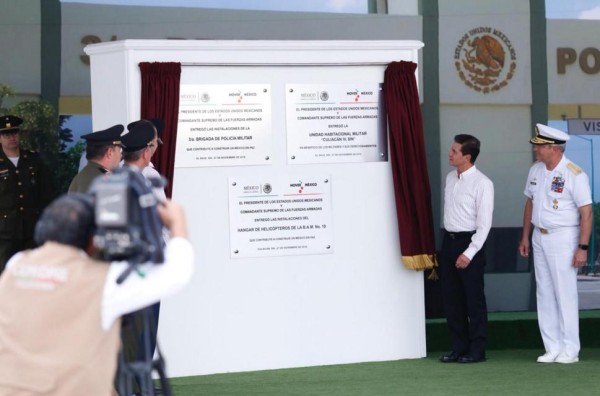 El Presidente de México Enrique Peña Nieto y el Gobernador Quirino Ordaz Coppel develaron la tarde de ayer la placa alusiva a la entrega de la tercera brigada de la Policía Militar, un área construida dentro de la base El Sauz.