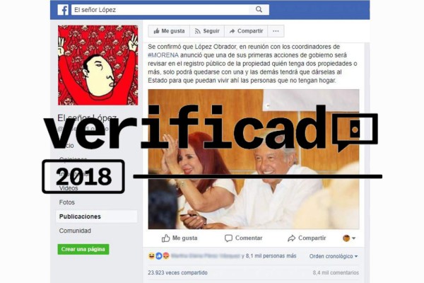 En una publicación hecha en la página de Facebook “El señor López”, que ha sido compartida casi 24 mil veces, se advierte que el candidato de Morena, Andrés Manuel López Obrador expropiaría propiedades a aquellos que posean dos o más, si es electo Presidente.