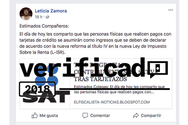 Una noticia publicada en El Fiscalista Noticias y que circula en redes sociales alerta que, desde este año, se aplicará el pago de impuestos por el uso de la tarjeta de crédito. Con el título "Tiro de gracia a contribuyentes, el SAT va tras tarjetazos", se explica que los pagos con tarjeta contarán como ingresos y deberán declararse ante el Servicio de Administración Tributaria (SAT).