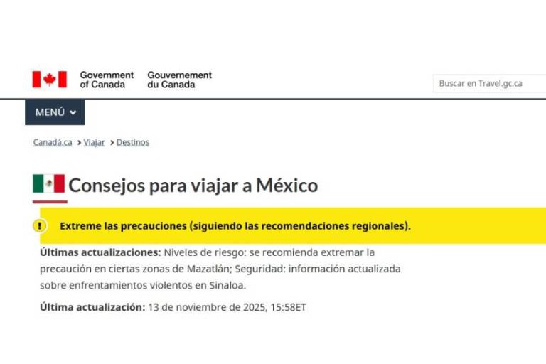 En la página oficial del Gobierno de Canadá se indicó que en Sinaloa “se producen enfrentamientos violentos con frecuencia entre grupos armados rivales, incluso en Culiacán y algunas zonas de Mazatlán fuera de las principales áreas turísticas. Grupos armados han detenido vehículos en la carretera que une Culiacán con Mazatlán y en otras vías principales”.