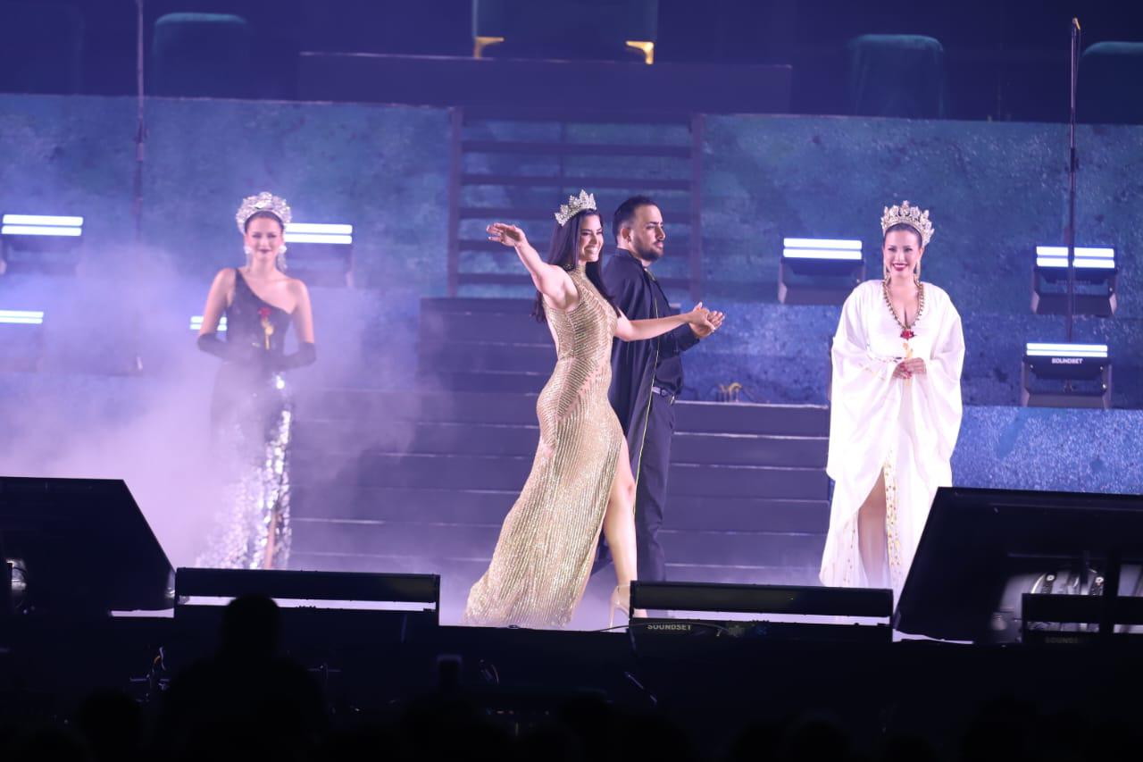 Vistiendo un espectacular vestido en tonalidades doradas, Desiré Ayón cautivó a los cientos de asistentes que se dieron cita en este recinto para ser testigos de cómo recibió la corona que la proclamó como nueva soberana de las fiestas culturales del Carnaval.