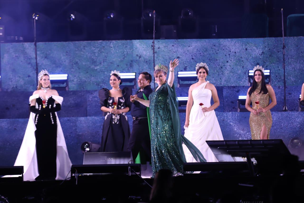 Como parte de la celebración de los 100 años de los Juegos Florales en Mazatlán, desfilaron sobre el escenario un total de 27 soberanas que a lo largo de este centenario han sido portadoras de esta corona, convirtiéndose en uno de los momentos más emotivos de la velada.