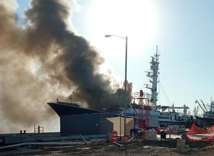 Se incendia barco atunero en los muelles cercanos a la zona del Parque Bonfil, en Mazatlán