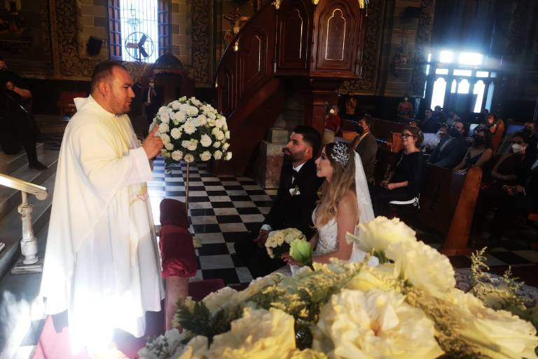 El Padre Adán Pazos bendijo la unión ante sus seres más queridos, entre quienes se encontraban sus padres, hermanos, tíos, primos y amigos.
