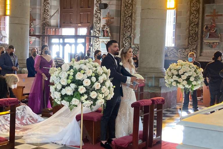José Urquidy del brazo de su madre, Alma Urquidy, entró a Catedral.