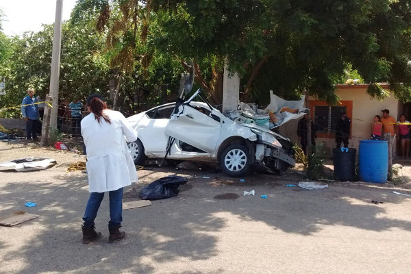 Policías mencionaron que el vehículo circulaban hacia el norte por dicha carretera, al llegar al ejido, su conductor perdió el control del volante y se estrelló contra un poste de concreto de la CFE, partiéndose el carro por la mitad.