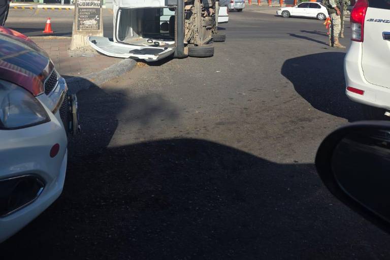 Accidente sobre Calzada Heroico Colegio Militar deja una furgoneta volcada, en Culiacán