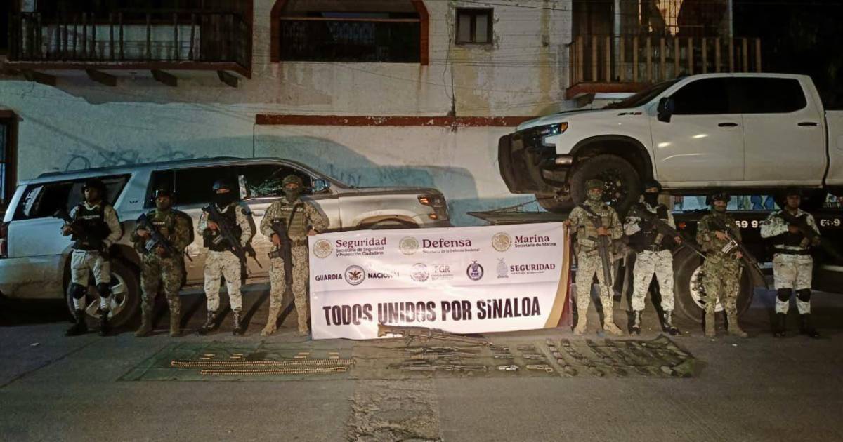 Elementos de la Sedena, en coordinación con la Guardia Nacional, Semar, FGR y la Secretaría de Seguridad Pública Estatal, aseguraron armas de uso exclusivo, municiones, vehículos y equipo táctico en San Francisquito, en Mazatlán, tras registrarse el primer evento en el que se agredió a personal militar.