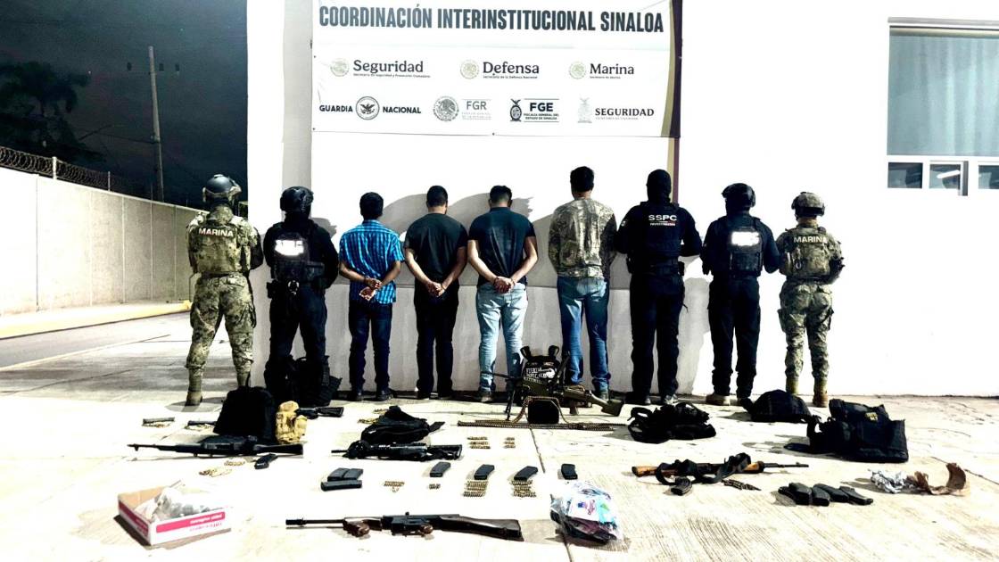 El operativo, derivado de una denuncia anónima al 089 sobre la presunta privación ilegal de la libertad de una persona, dejó como saldo la detención de cinco civiles, uno de ellos menor de edad, así como el aseguramiento de armas, cargadores, vehículos, presunta droga y equipo táctico. La detención se realizó durante patrullajes terrestres en la localidad de Yebavito, sindicatura de Las Tapias, en Culiacán.