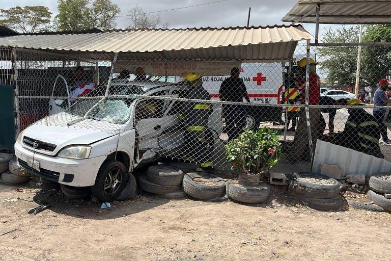 Tras la colisión, el automóvil salió proyectado y se estrelló contra un negocio ubicado a un costado de la carretera, quedando incrustado en la valla metálica del inmueble. La pareja quedó atrapada en el interior del vehículo. Por su parte, el camión de carga volcó sobre uno de sus costados, quedando sobre la banqueta divisoria de la vialidad.