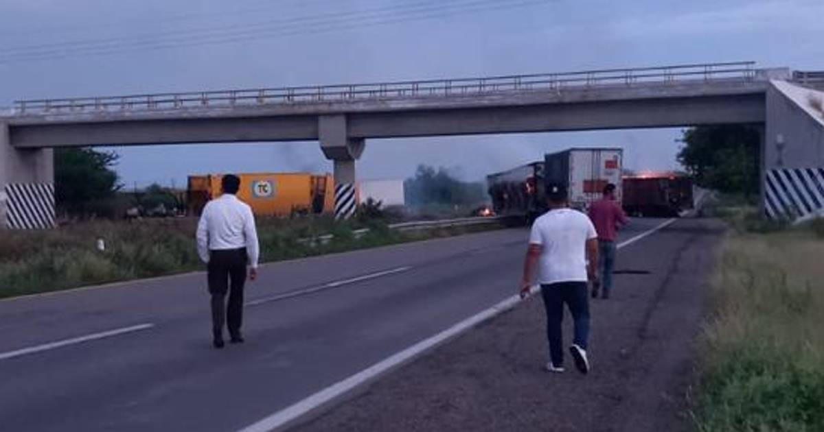 Un bloqueo con al menos cinco tráileres incendiados se reporta sobre la autopista Mazatlán-Culiacán en estos momentos.