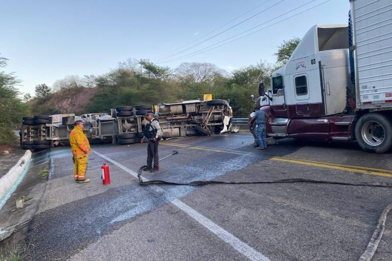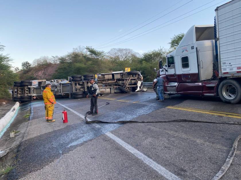 MAZATLÁN._ La Súpercarretera Durango-Mazatlán se encuentra cerrada por la volcadura de una pipa, la cual derramó combustible.