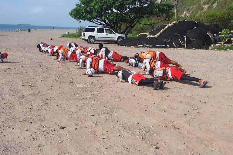 De acuerdo a un comunicado, Gustavo Espinoza Bastidas, Coordinador del Grupo de Salvavidas, informó que para este sábado los 30 elementos salieron a campo para practicar la técnica de lanzamiento de cuerda en cuerpos de agua y junto con un compañero conformar un sistema de rescate, además de tener acondicionamiento físico y adaptación del chaleco salvavidas en dichas emergencias.