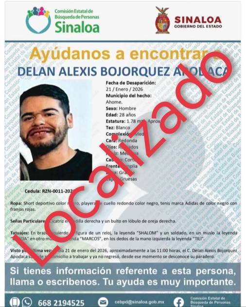 El joven de 28 años, vecino del sector Infonavit Bachomo, regresó por su propio pie a su domicilio poco antes del amanecer, poniendo fin a la angustia que vivían sus allegados desde el pasado miércoles 21 de enero.