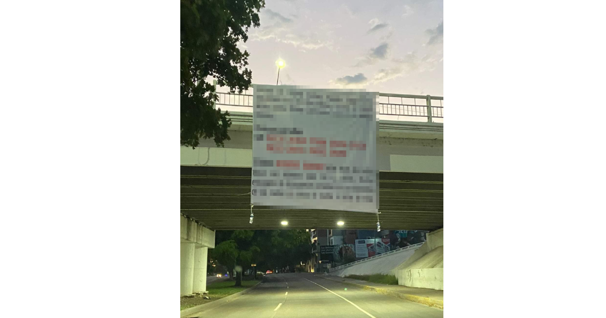 Una lona amaneció colgada en un puente ubicado en el primer cuadro de la ciudad, en el que se reclamaba a elementos de las fuerzas de seguridad federal de cometer ilícitos.