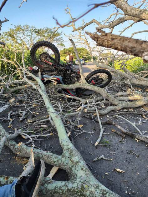 Árbol colapsa sobre carretera de El Walamo y deja a motociclista lesionado