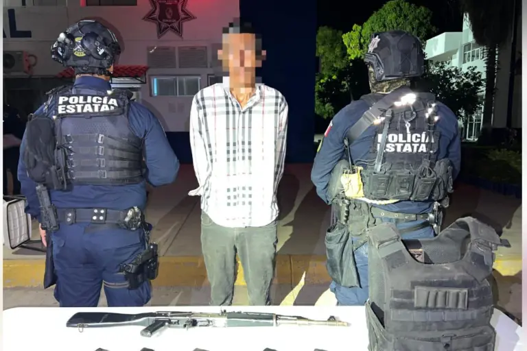 La autoridad decomisó un fusil AK-47, calibre 7.62 x 39 milímetros, cinco cargadores para fusil, 150 cartuchos útiles, calibre 7.62 x 39 milímetros y un chaleco táctico con sus respectivas placas balísticas.