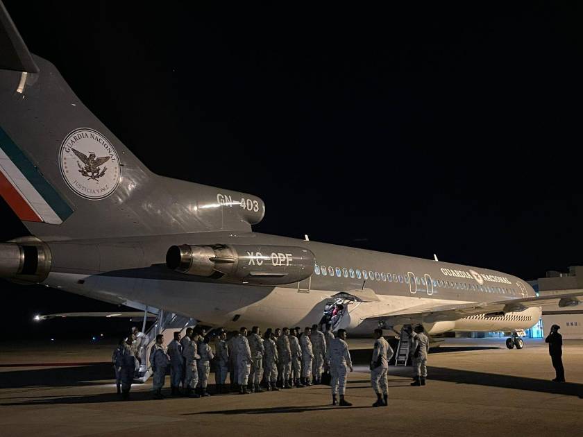 A bordo de un avión de la Fuerza Aérea Mexicana, 150 elementos de la Guardia Nacional arribaron con el fin brindar apoyo a la estructura de seguridad que se implementa en el sur de Sinaloa.