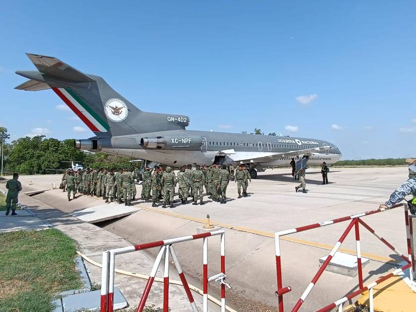 Los elementos recién llegados a la base área militar en Bachigualato apoyarán con la estrategia de seguridad
