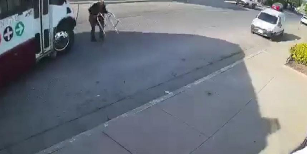Una cámara del lugar captó el accidente que se registró en la colonia Emiliano Zapata, donde el camionero no hace alto y lo atropella.