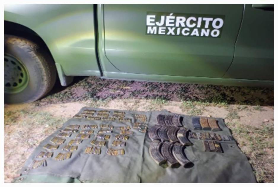 Elementos del Ejército Mexicano aseguraron 28 cargadores y 382 cartuchos durante un operativo de reconocimiento terrestre en el poblado San Isidro, perteneciente a Angostura.