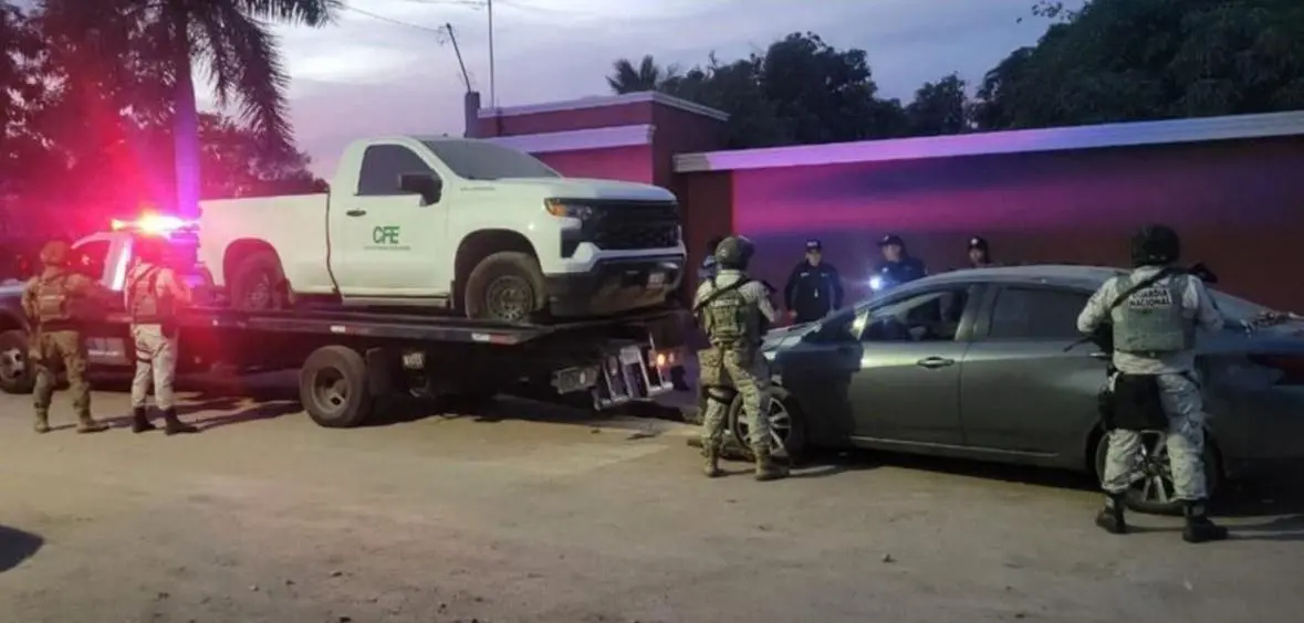 En el inmueble inspeccionado se localizó una camioneta Chevrolet Silverado, la cual contaba con reporte de robo y portaba calcomanías presuntamente apócrifas de la Comisión Federal de Electricidad (CFE). Asimismo, se recuperó un automóvil Nissan Sentra, también identificado como robado.