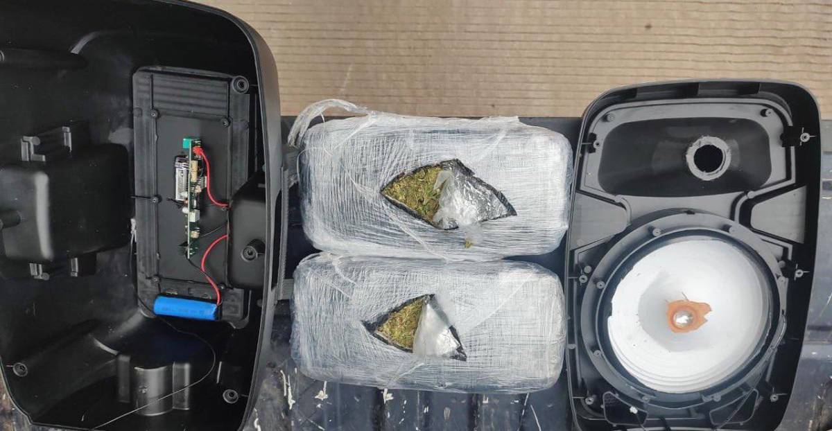 El binomio canino mostró una alerta positiva frente a dos cajas de cartón. En una de ellas procedente de Navolato con destinatario en Guadalupe, Nuevo León, localizaron una bocina, en cuyo interior encontraron dos paquetes que contenían hierba verde y seca con las características propias de la marihuana.