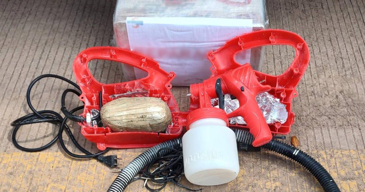 Un paquete que contenía cristal que estaba oculto dentro de una pistola para pintar fue detectada y asegurada por agentes de la Guardia Nacional con el apoyo del binomio canino en una empresa de paquetería de Culiacán.