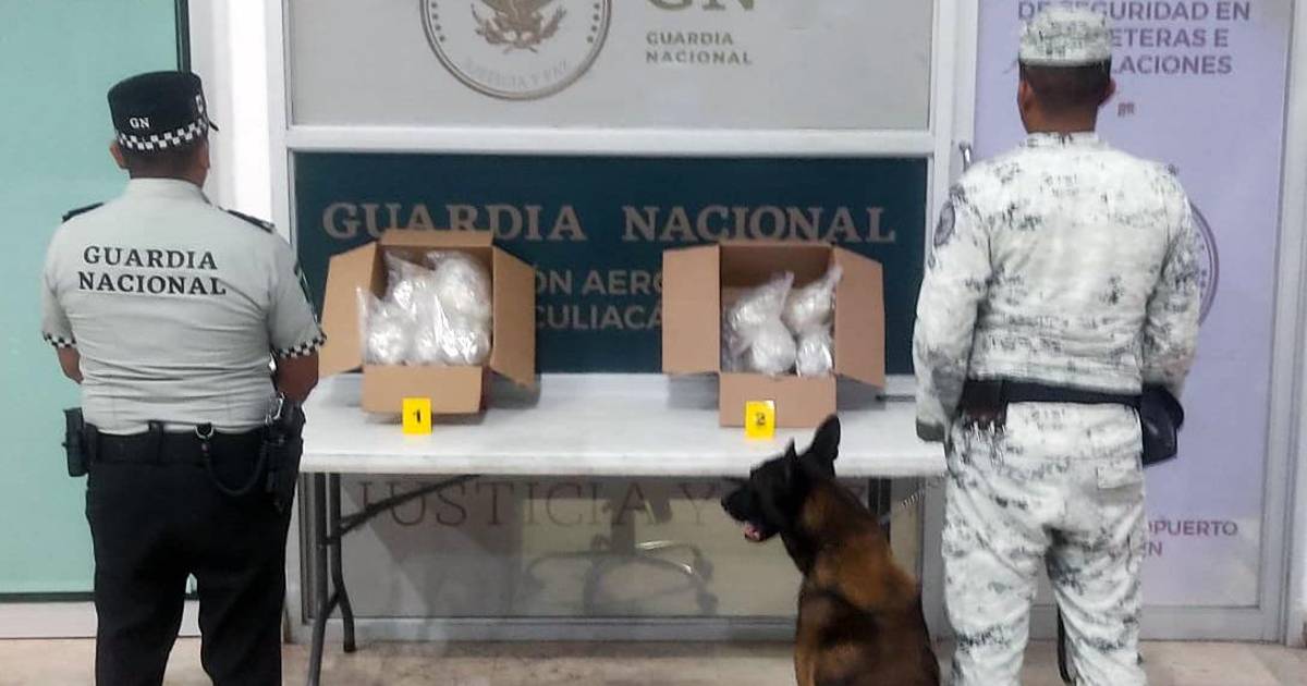 Agentes de la Guardia Nacional aseguraron en el Aeropuerto Internacional de Culiacán envíos de mensajería que contenían paquetes de cristal que tenían como destino el estado de Chihuahua.