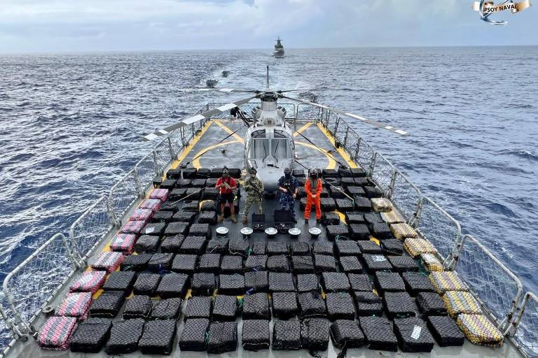 En un segundo evento, personal naval con apoyo del buque patrulla interceptora ARM “Regulus” (PI-1115), una embarcación tipo Defender y un helicóptero tipo Panther, aseguró 32 bultos balizados a la deriva, mismos que en su interior contenían presunta cocaína, con un peso aproximado de 1.6 toneladas, así como una embarcación menor con tres motores fuera de borda; al suroeste de Lázaro Cárdenas, Michoacán.