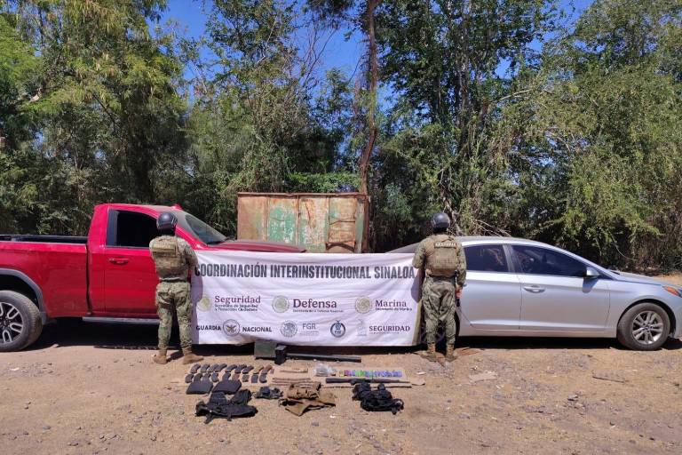 NAVOLATO._ Un operativo por tierra y aire, realizado por elementos de la Secretaría de Marina-Armada de México en distintos puntos de Navolato, derivado de labores de inteligencia, resultó en el aseguramiento de vehículos, armamento, artefactos explosivos y presunta droga.