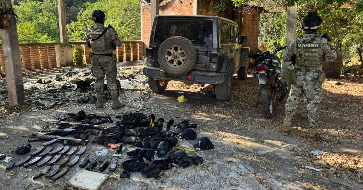 Un vehículo con armamento y equipo táctico fue asegurado por elementos de la Secretaría de Marina en las inmediaciones del poblado de Copala, del municipio de Concordia.