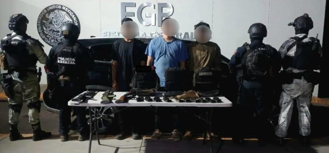 El aseguramiento se dio en el marco de recorridos de vigilancia terrestre, cuando los agentes observaron un vehículo que salía de un domicilio. Al notar la presencia de las autoridades, tres civiles descendieron de la unidad e intentaron reingresar al inmueble, momento en que fueron interceptados y detenidos.