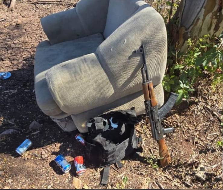 El hallazgo se registró en un sendero de tierra ubicado entre el fraccionamiento Alturas del Sur y la colonia Guadalupana La Piedra. Personal castrense que realizaba recorridos de vigilancia encontró reposado en un sillón viejo un arma de fuego de calibre largo.