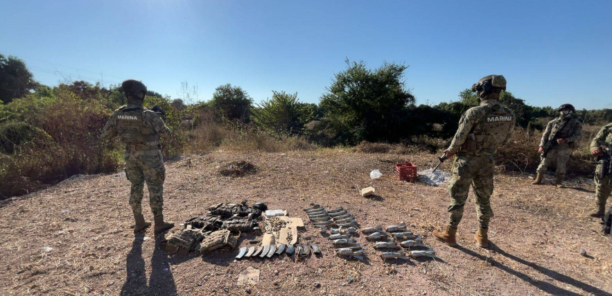 Tras el enfrentamiento entre grupos de civiles armados ocurrido el miércoles 17 de diciembre en Escuinapa, elementos de la Secretaría de Marina (Semar) aseguraron un arsenal, explosivos y equipo táctico durante operativos en diversas zonas del municipio.