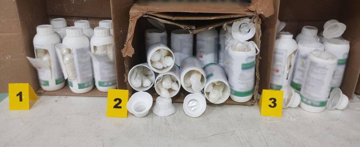 En las otras tres cajas de cartón localizaron alrededor de 24 botellas de plástico que aparentaban trasladar una solución salina, pero contenían más de 100 envoltorios con una sustancia blanca y cristalina con las características propias de la droga sintética cristal, con destino a un domicilio en Tehuacán, Puebla.