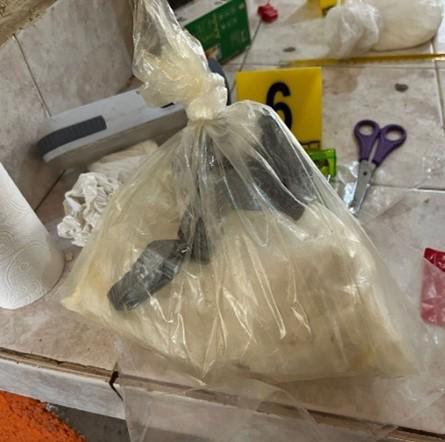 En el lugar se aseguraron 73 litros 386 mililitros y 545 gramos de sustancia que contiene clorhidrato de metanfetamina, 20 litros 990 mililitros de ácido clorhídrico, dos centrifugadoras, una olla, un tanque de oxígeno y un cilindro de gas.