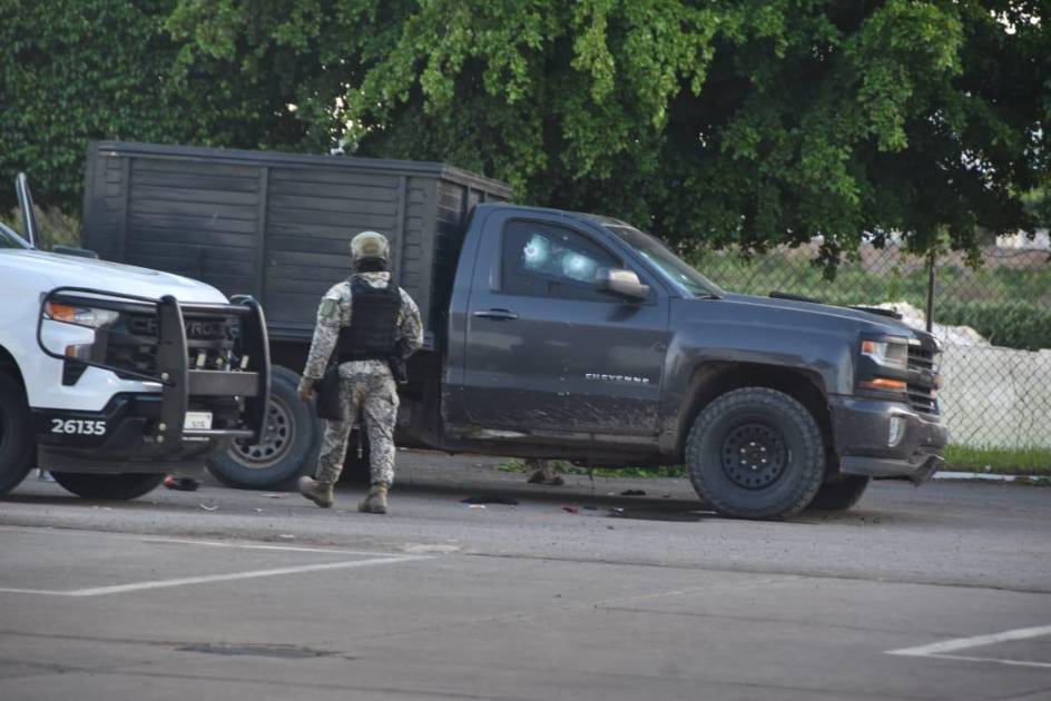 Aseguran Ejército y Guardia Nacional camioneta blindada en entrada de Villa Juárez, Culiacán